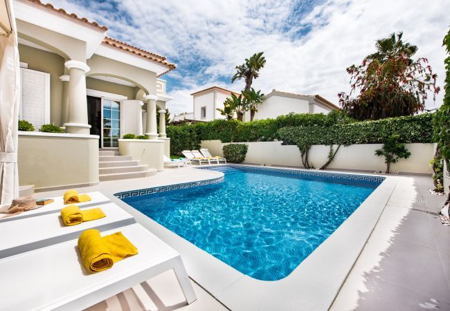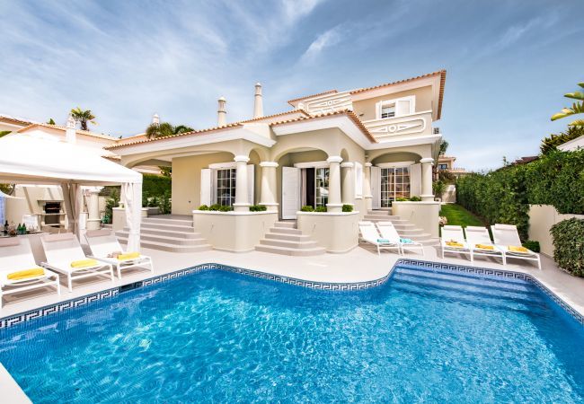 Belle villa située à côté de Praia da Galé, avec Wi-Fi, TV satellite, climatisation et piscine privée. Nous fournissons des serviettes de piscine, une pour chaque personne pendant son séjour.