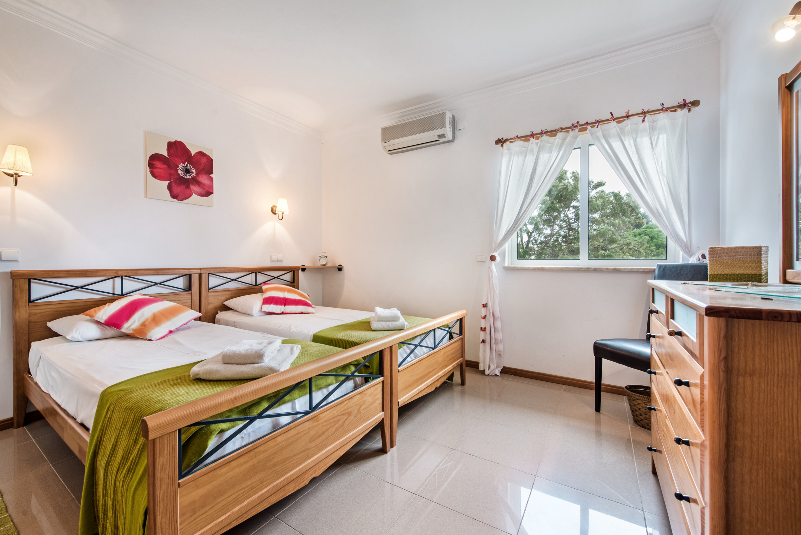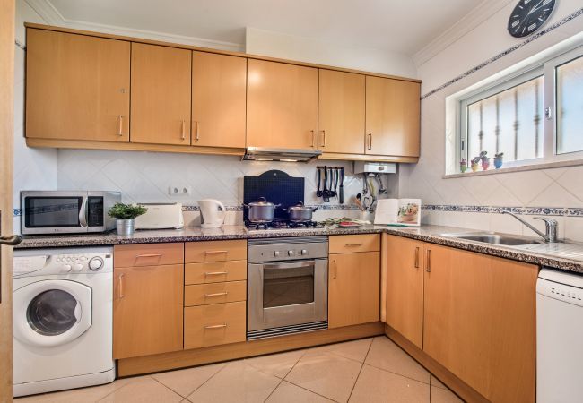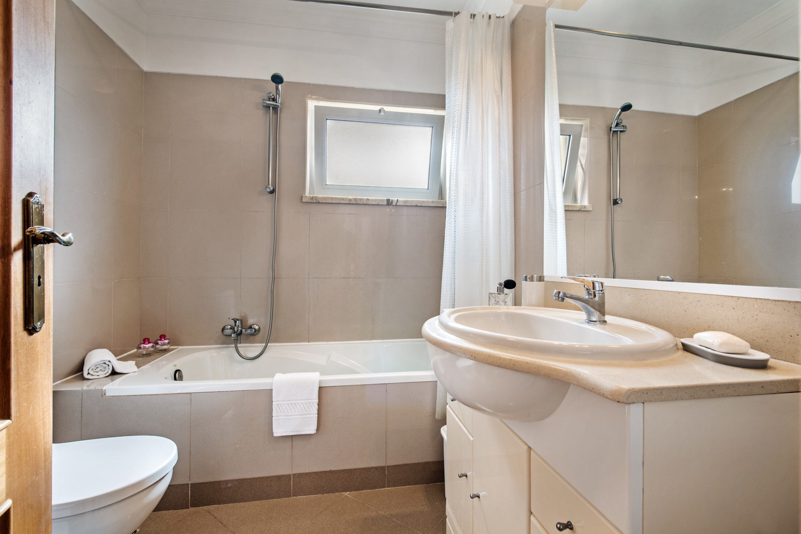 Accommodation: Fully fitted kitchen/breakfast room with dishwasher, washing machine, microwave, oven, hob, fridge freezer, toaster, kettle with patio door to small terrace. Lounge/dining room with TV with MEO provider (see list of channels from standard pack - https://en.meo.pt/tv/channels-programming/channels-list/fibre?pacote=Pack+Standard). Patio doors to large terrace overlooking the pool and garden areas. Twin bedroom with en-suite bathroom. Twin bedroom with patio door to balcony, bathroom.