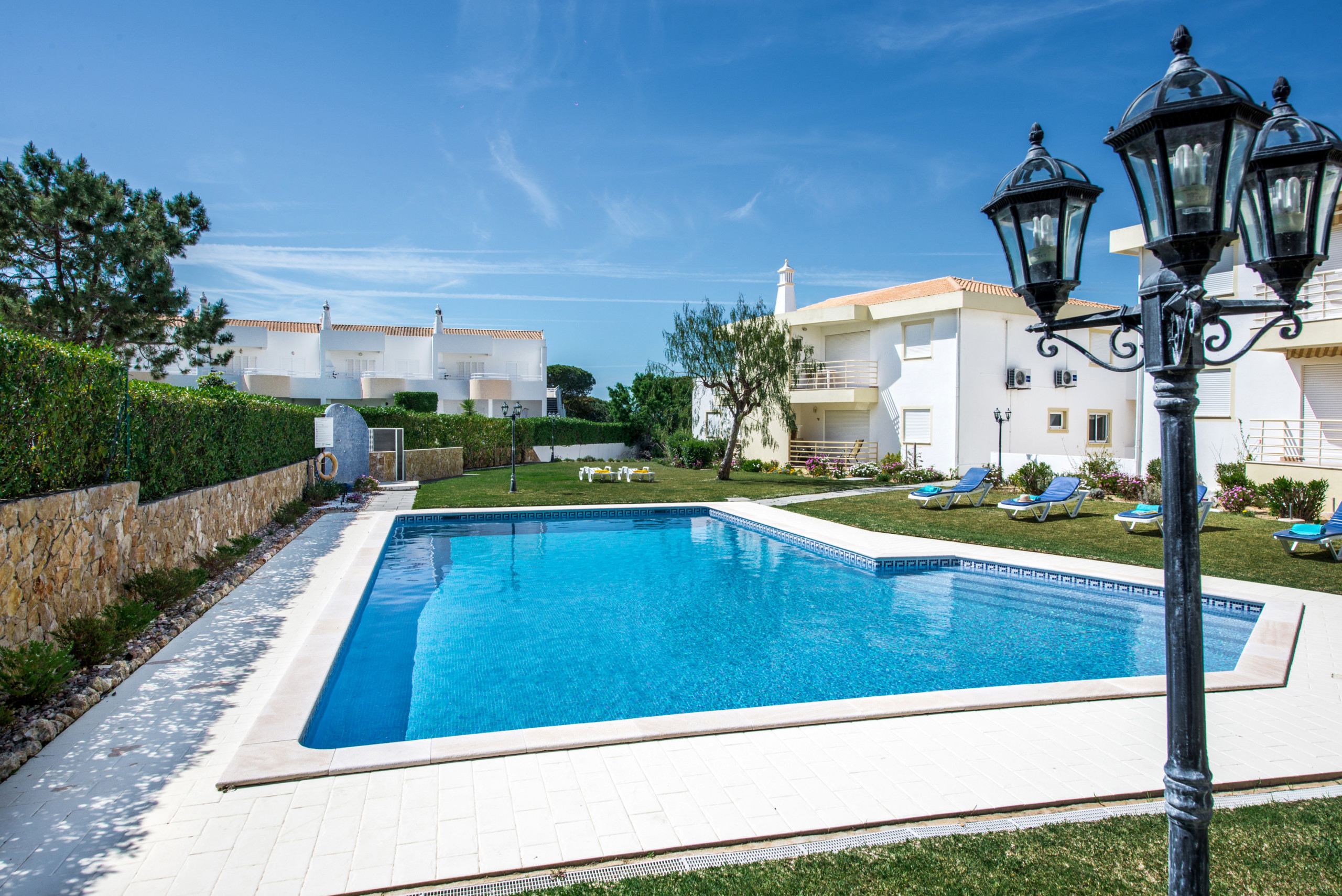 Extremely spacious fully air conditioned 2 bedroom apartment, just 700 metres, so just a few minutes walk to Galé beaches, supermarket cafe and restaurants. Very large communal swimming pool with Roman steps and two children pools, surrounded by very spacious lawned gardens with a tennis court. The apartment has a safe. These apartments are totally enclosed by walls and gates.