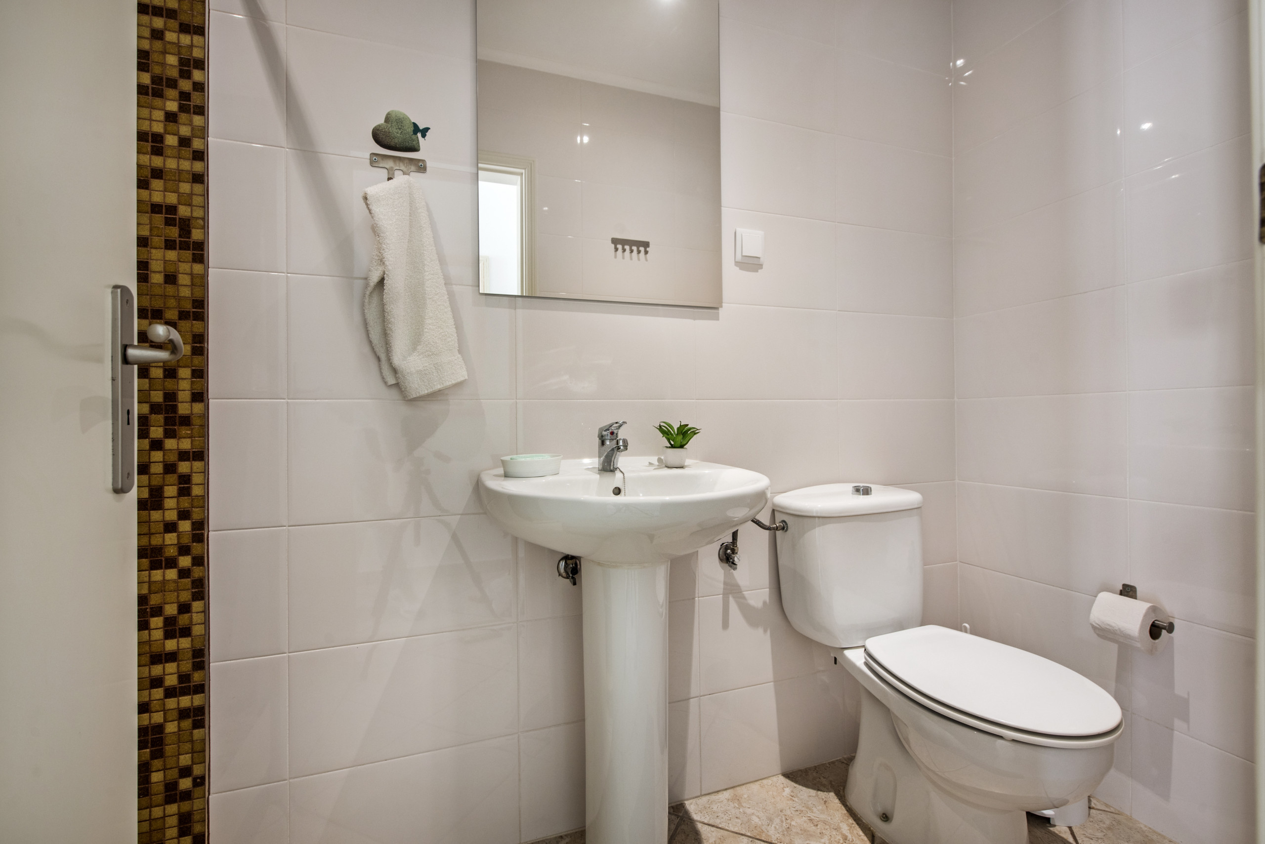 Also located on the ground floor is the spacious and fully equipped kitchen with a microwave, fridge / freezer, dishwasher, coffee machine, toaster, sink, and all the utensils necessary to cook at home. The lounge/dining area with comfortable sofas and a large TV with international and Portuguese channels. The lovely outdoor terrace with swimming pool is accessed by sliding doors from the dining area, lounge and kitchen.