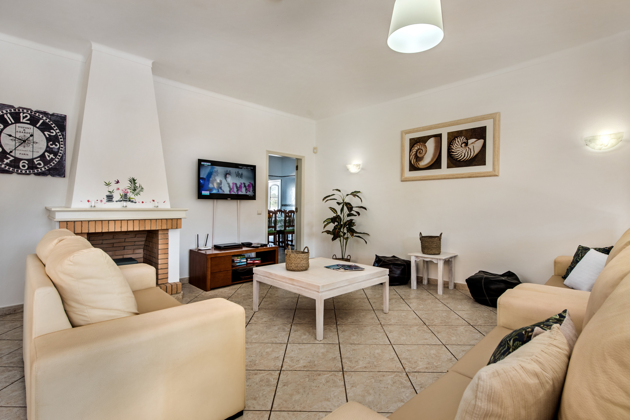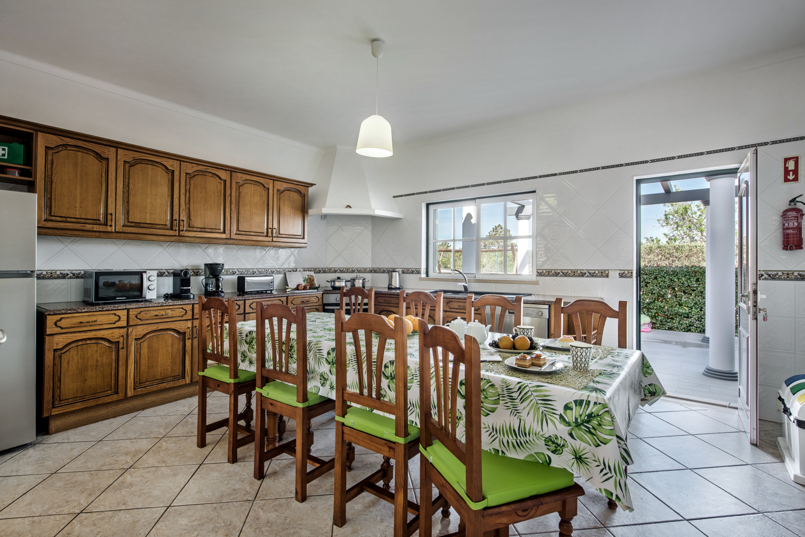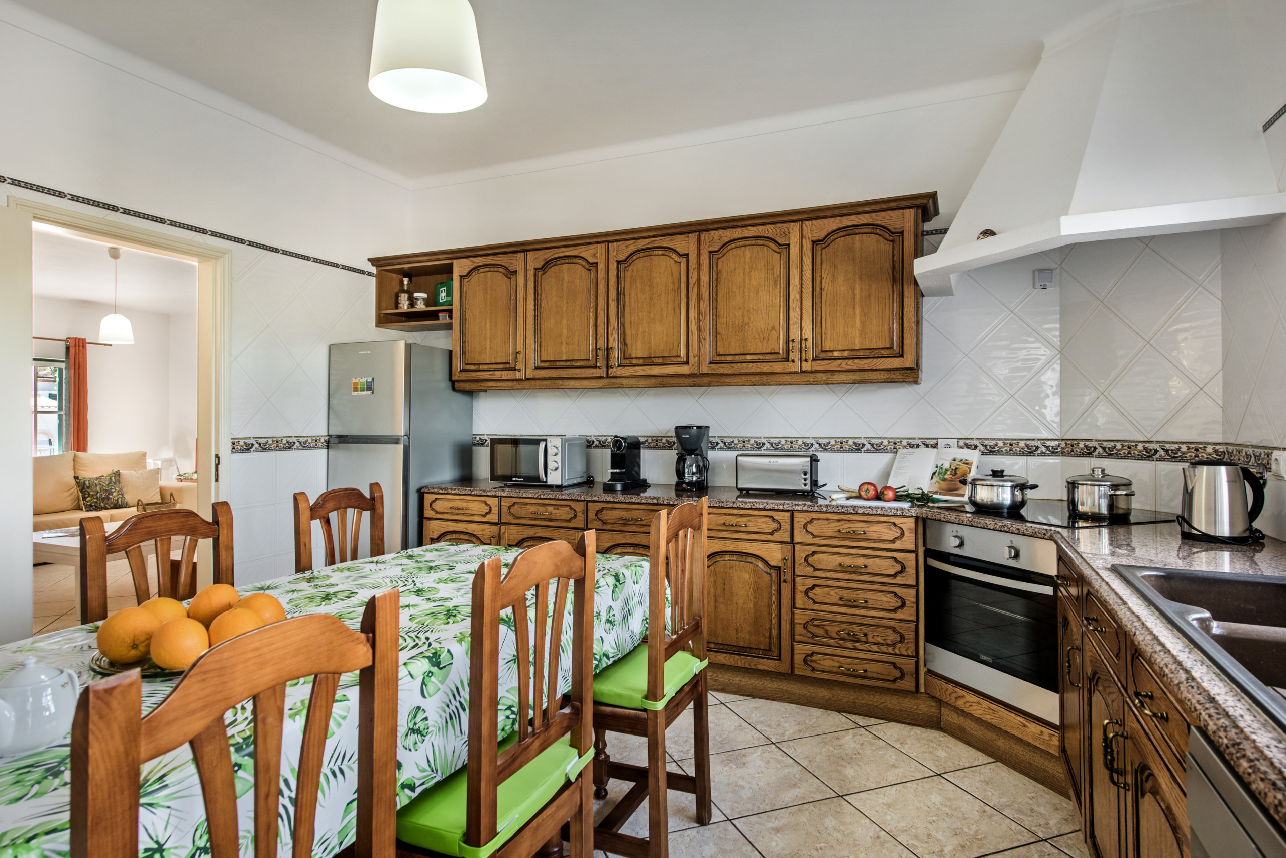 Lounge with TV MEO provider (see list of channels from standard pack - https://en.meo.pt/tv/channels-programming/channels-list/fibre?pacote=Pack+Standard) and music channels and DVD, separate dining room, WC, spacious fully fitted and equipped kitchen, with breakfast table, electric hob and oven, microwave, dishwasher, fridge/freezer and washing machine, toaster and kettle.