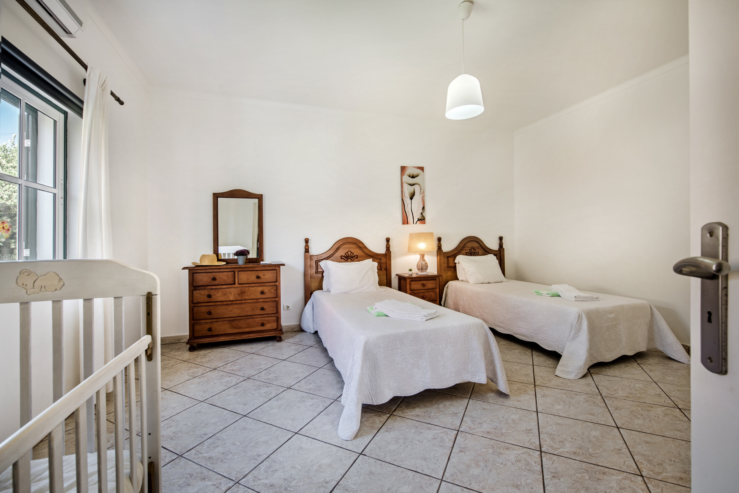 Fabulous villa walking distance to lovely restaurants, beach and supermarket. We stayed as 2 families of 4, each bedroom had an en-suite, rooms were large and airy and bonus of a utility area with washing machine.