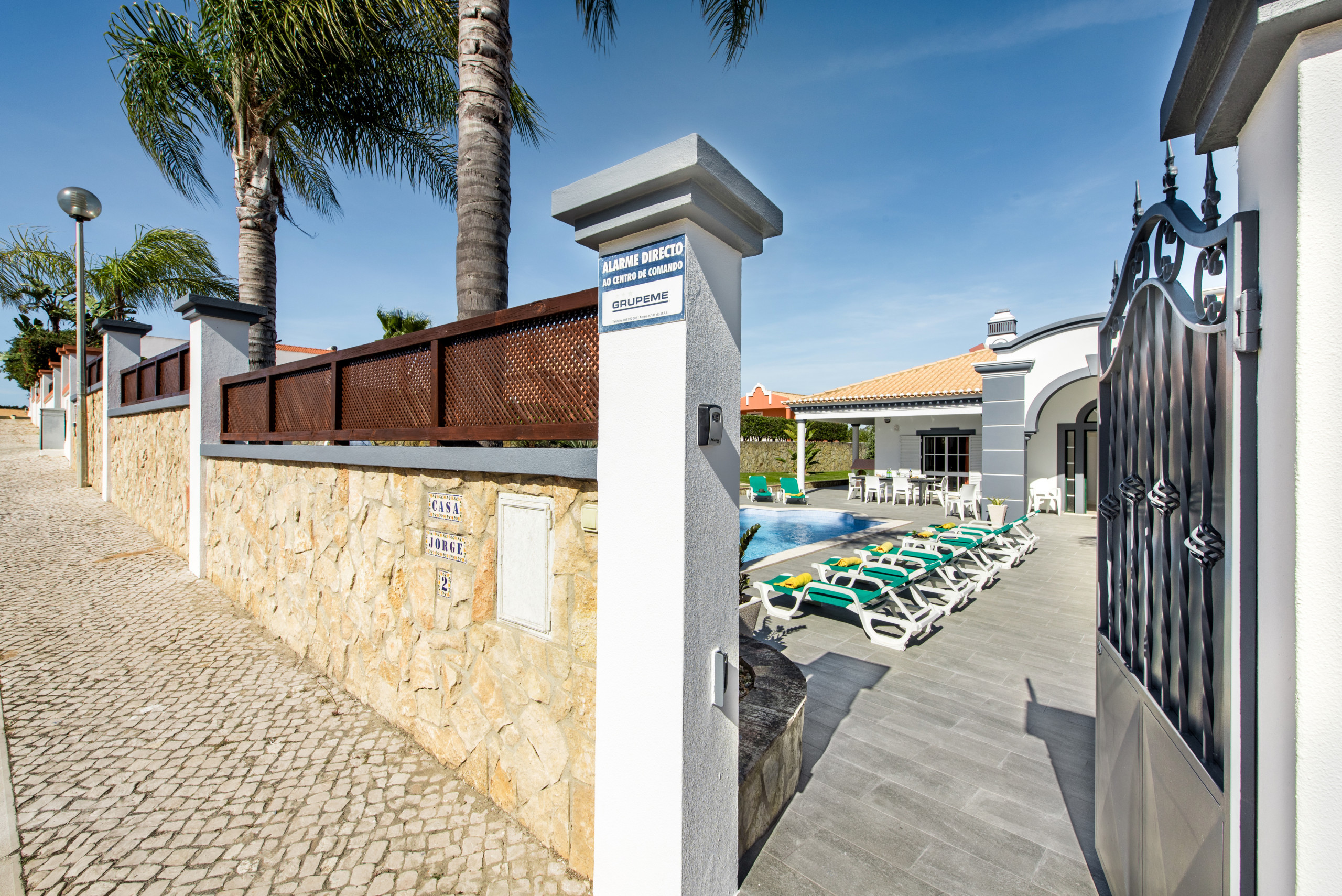 The villa has a safe, a security alarm system and is totally enclosed by walls and gates.