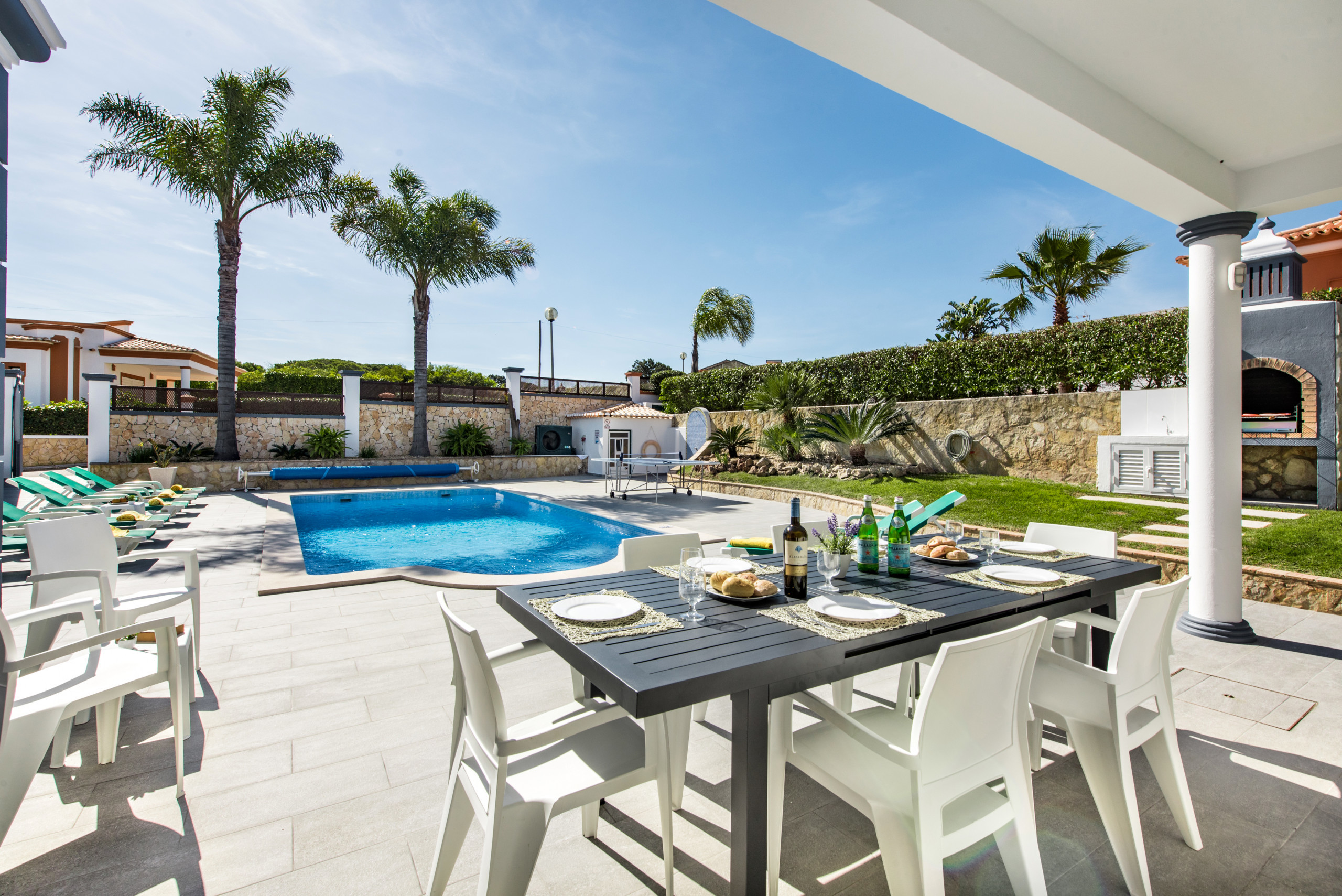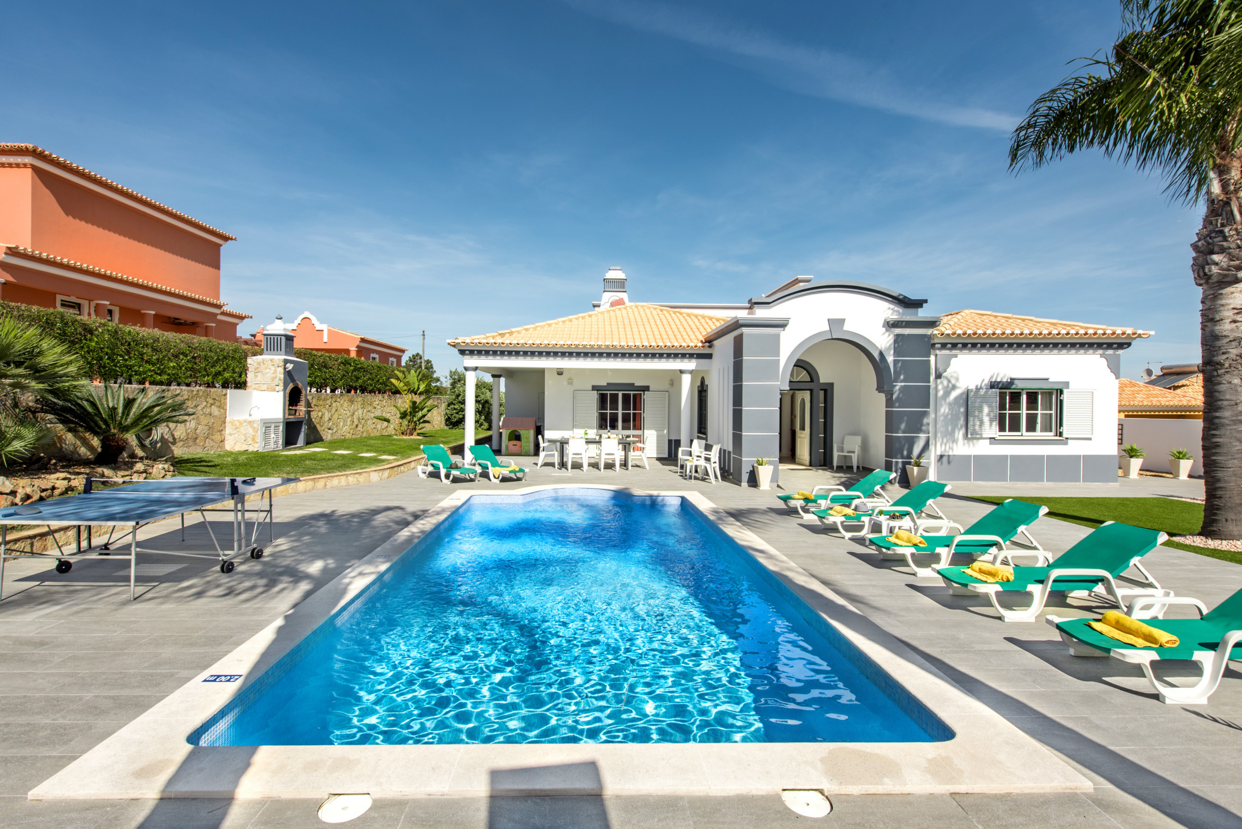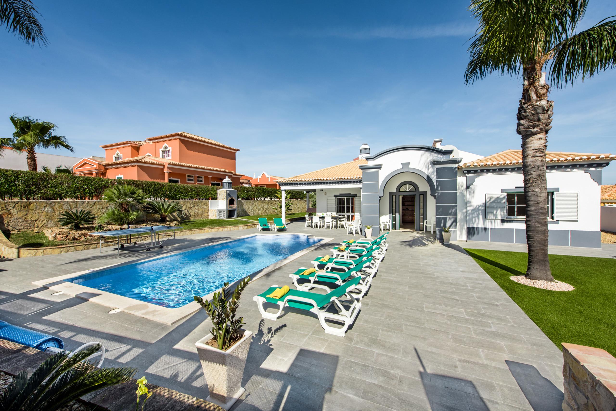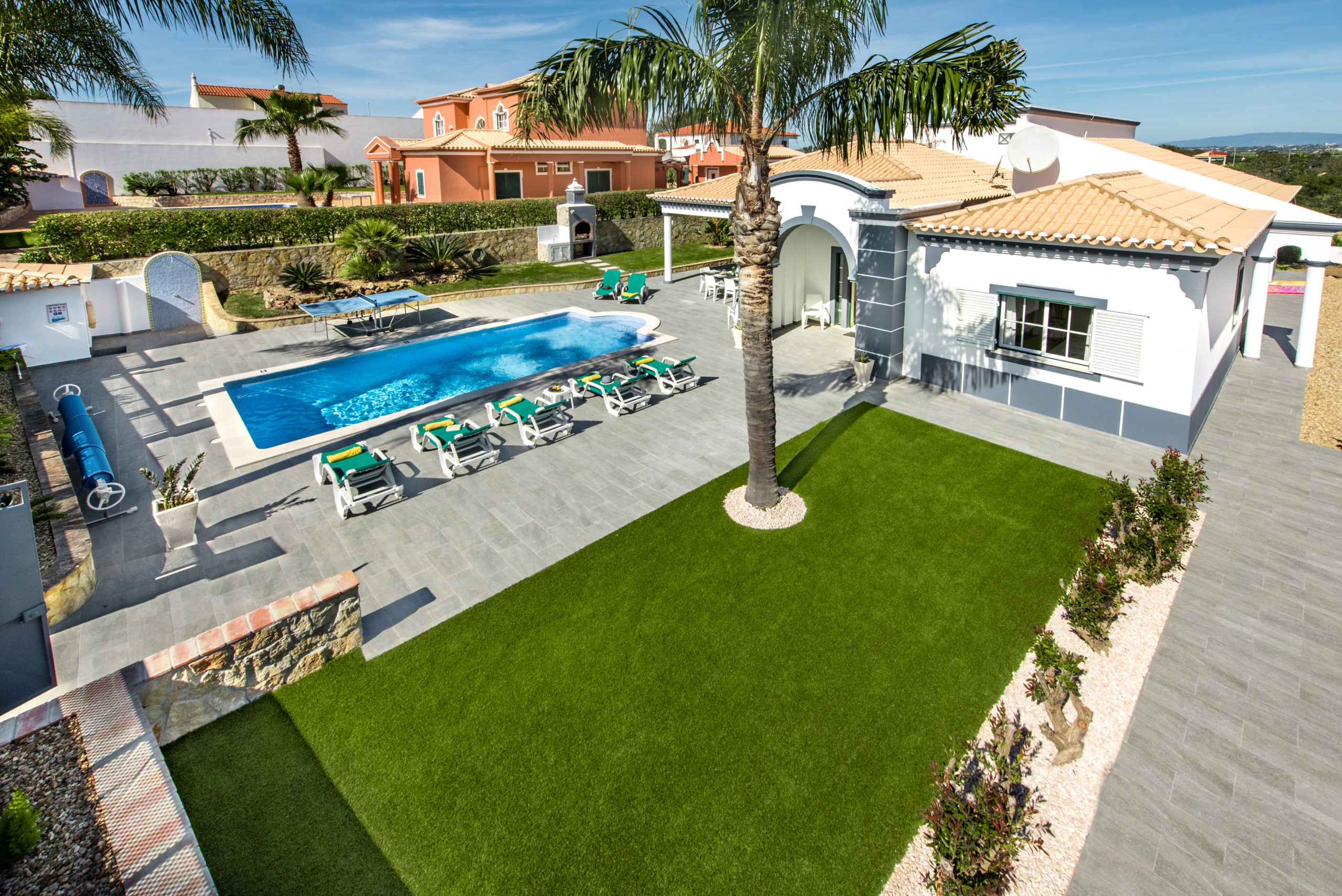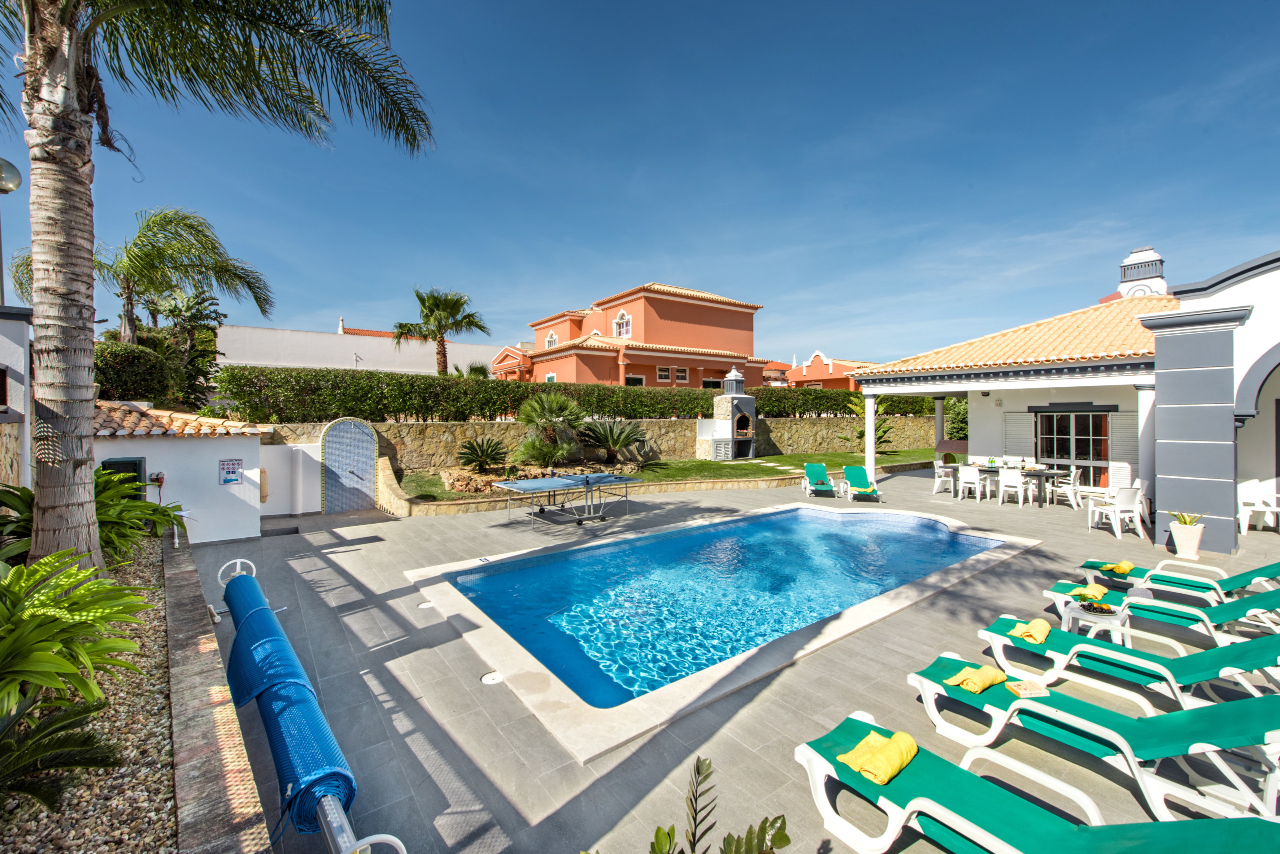 Large outdoor area with swimming pool and table tennis table. Short drive into Albufeira ( 10mins ) and golf clubs within driving distance as well. Fantastic cleaning service provided once a week and contact available through a texting service with the office if ever needed. |