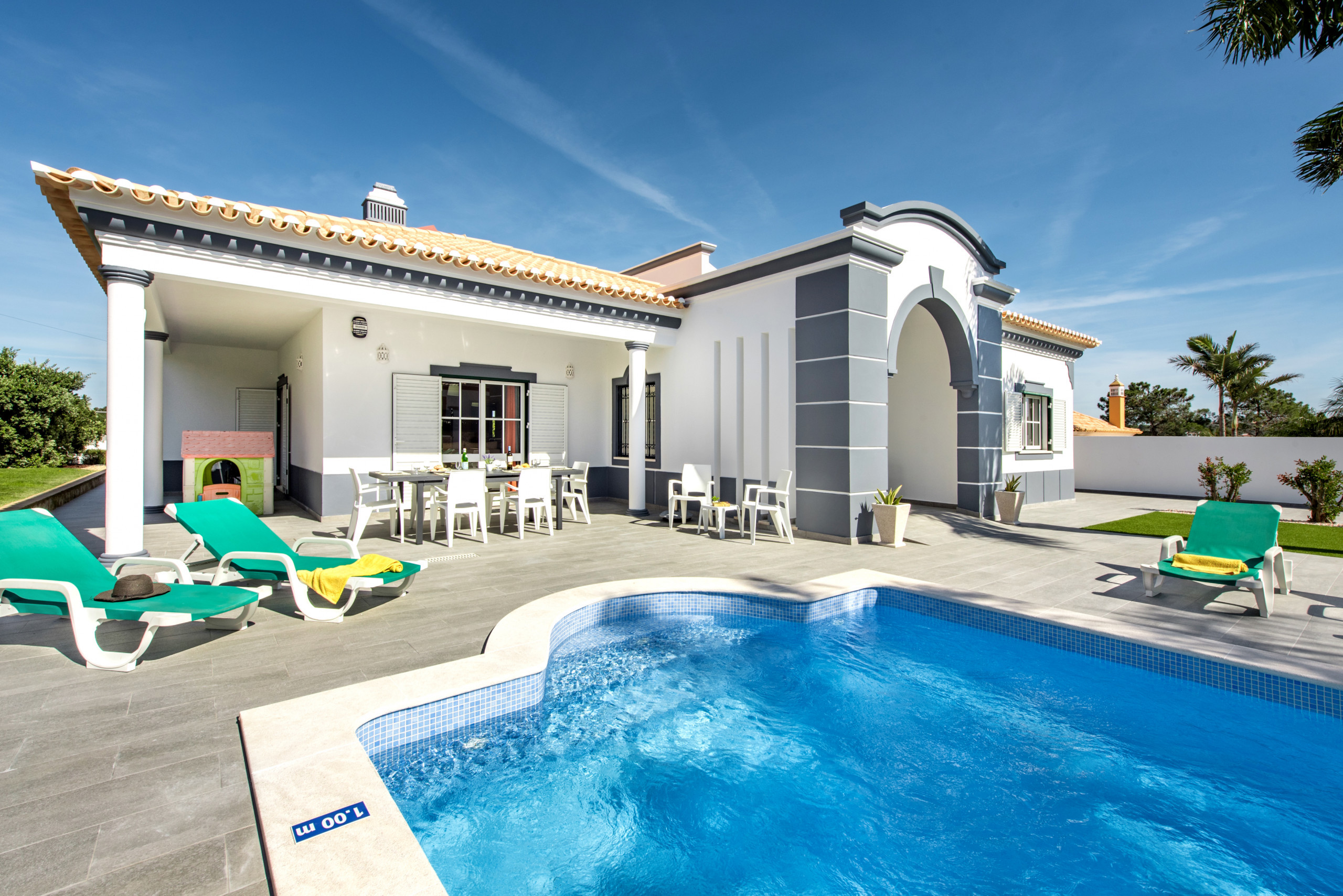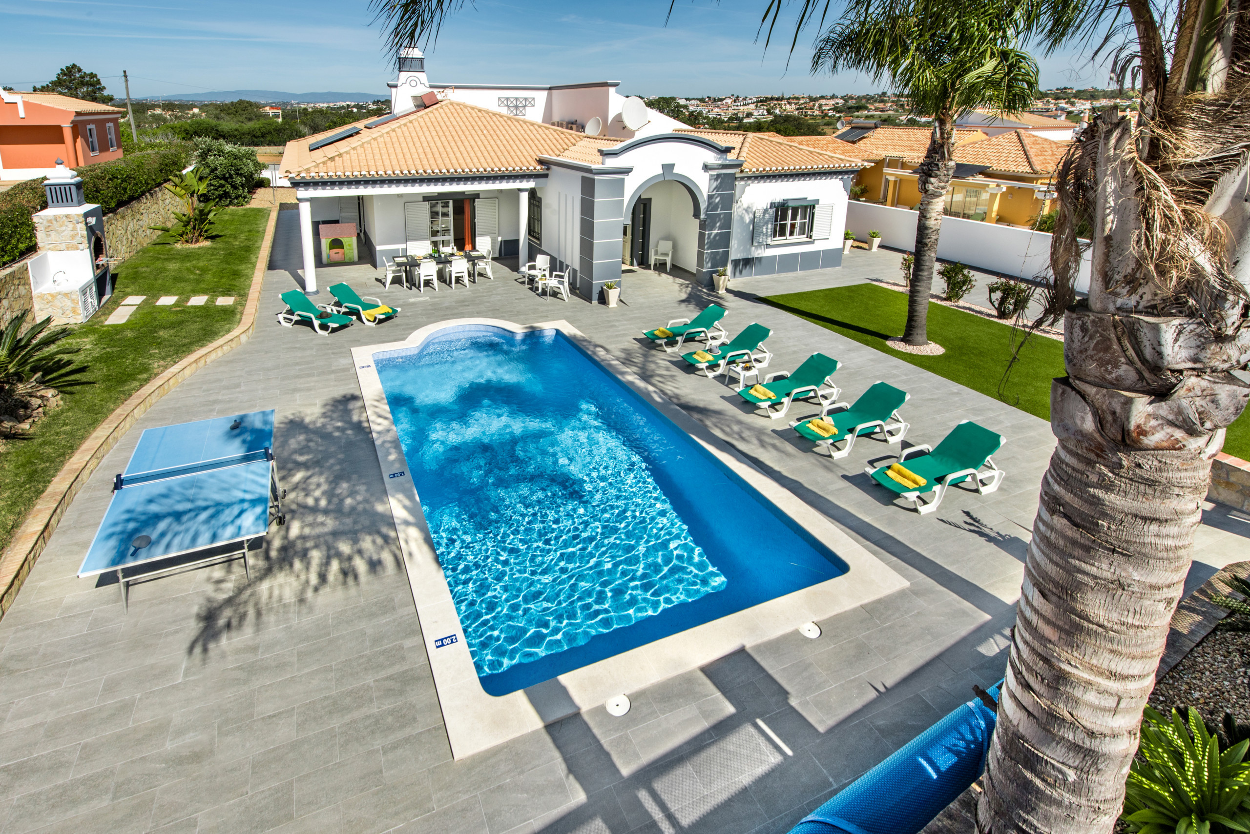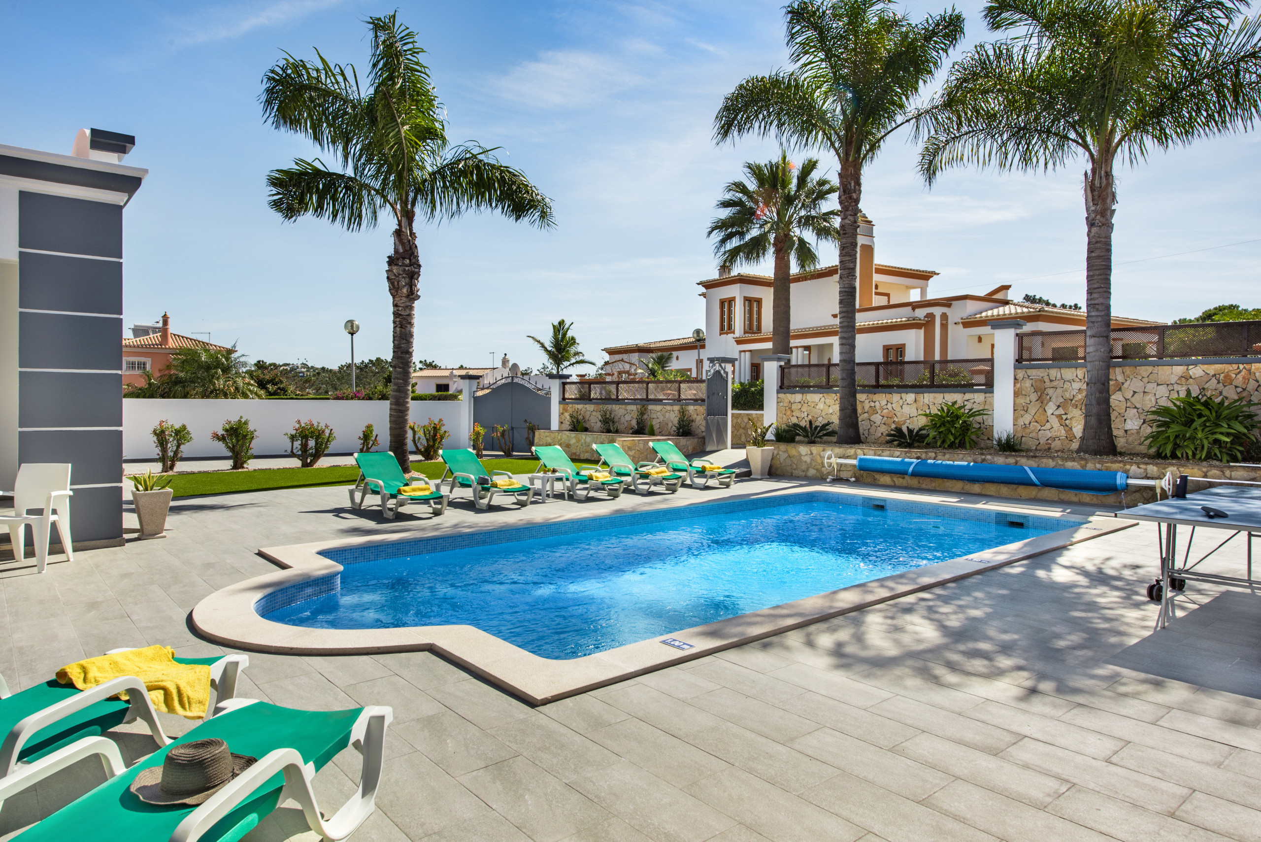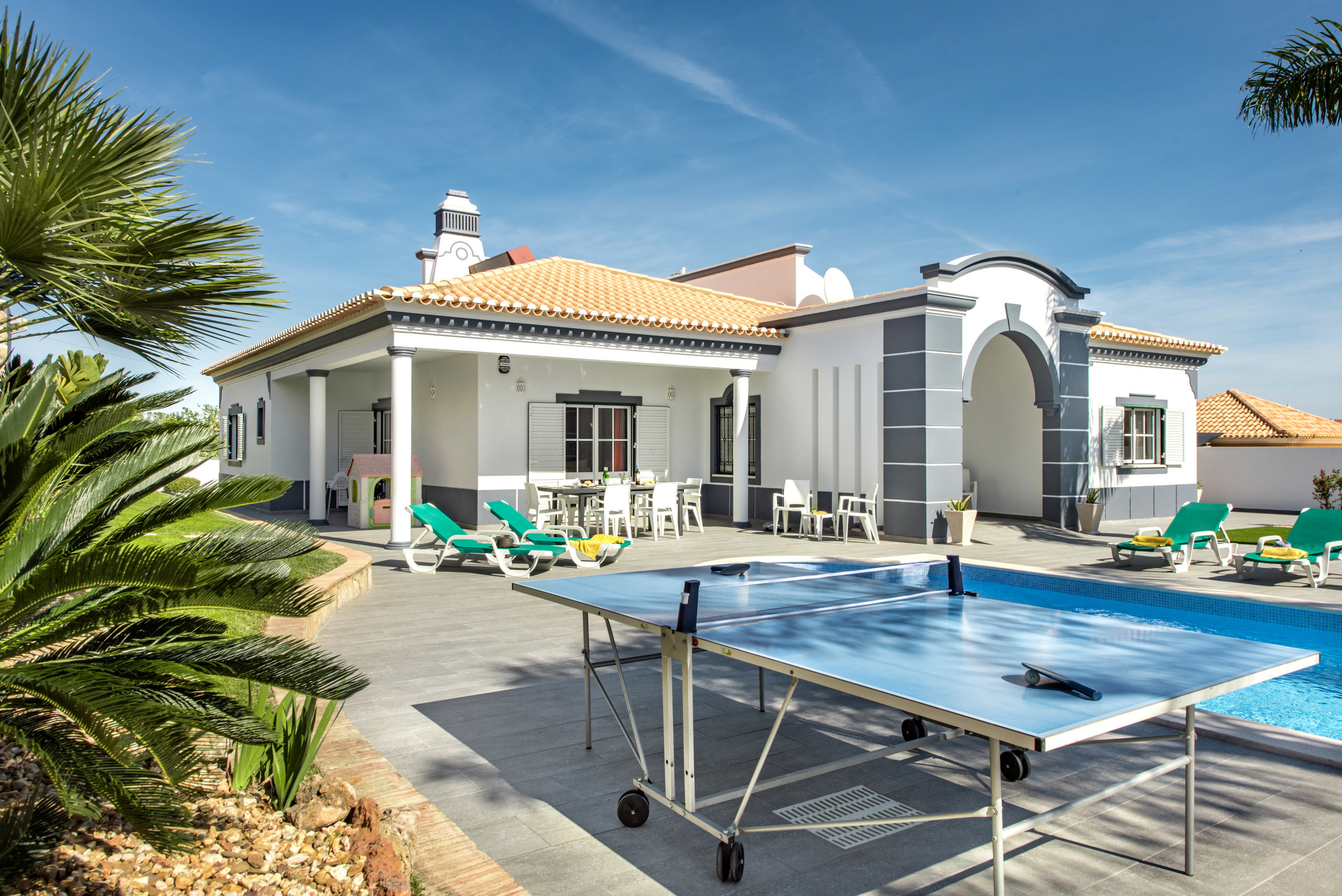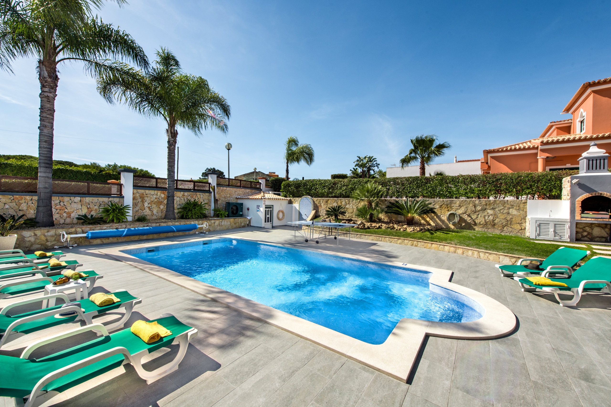 Large outdoor area with swimming pool and table tennis table. Short drive into Albufeira ( 10mins ) and golf clubs within driving distance as well. Fantastic cleaning service provided once a week and contact available through a texting service with the office if ever needed. |