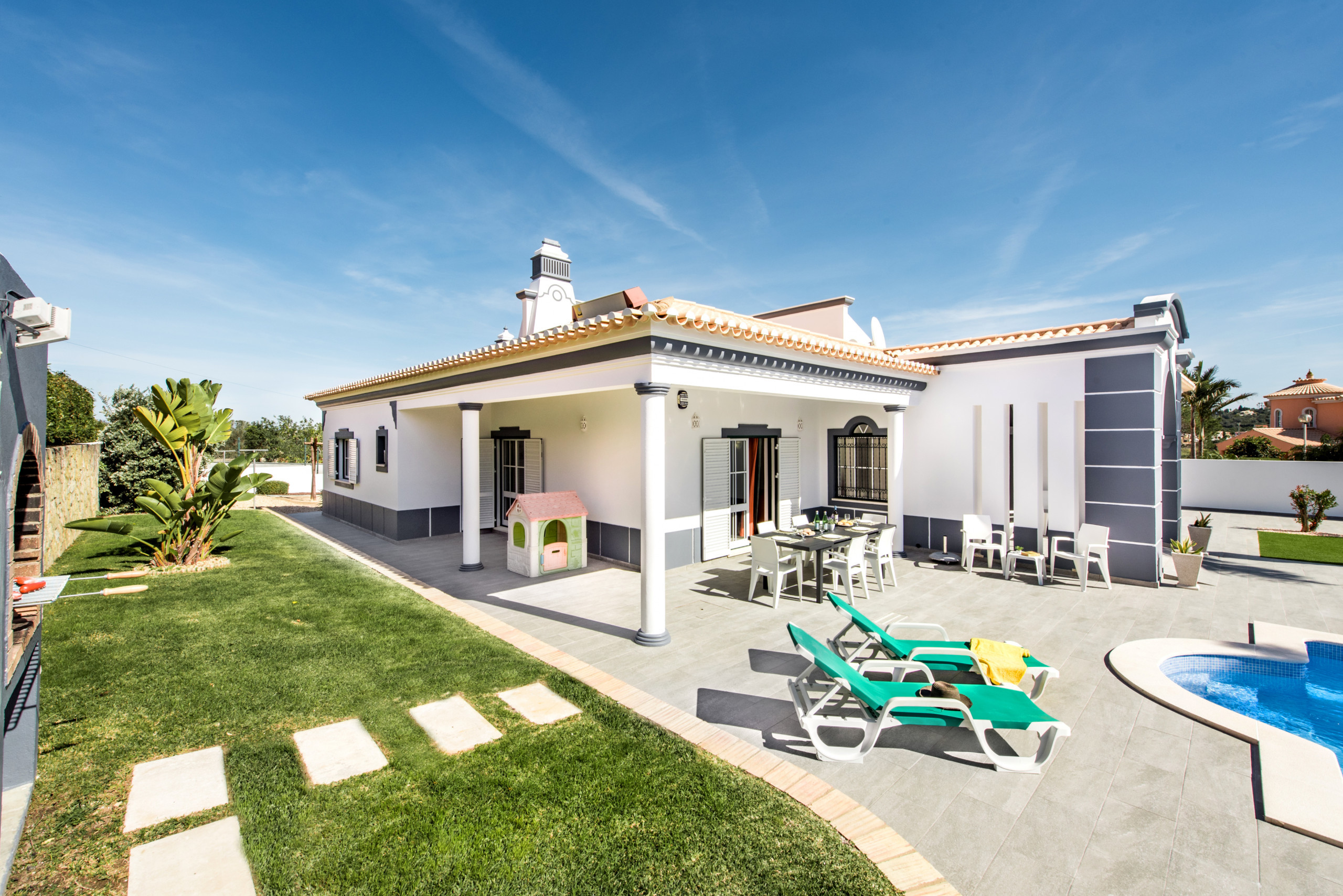 We have stayed in Gale many times, and this is the best villa we have stayed in. All the rooms are big and even though it was July the villa stays really cool. The outside space was the best feature its lovely and big and well kept with lots of sun loungers. The area is ideal with apolina supermarket a 10 min walk away and a good bakey just round the corner. There is a good fish restaurant at the end of the road which is always full and reasonably priced. Another 10 mins walk is another good restaurant Sau Domingos a bit more expensive but worth it, and some bars and another bakery. I would definitely recommend this villa and hope to be able to return in the future.