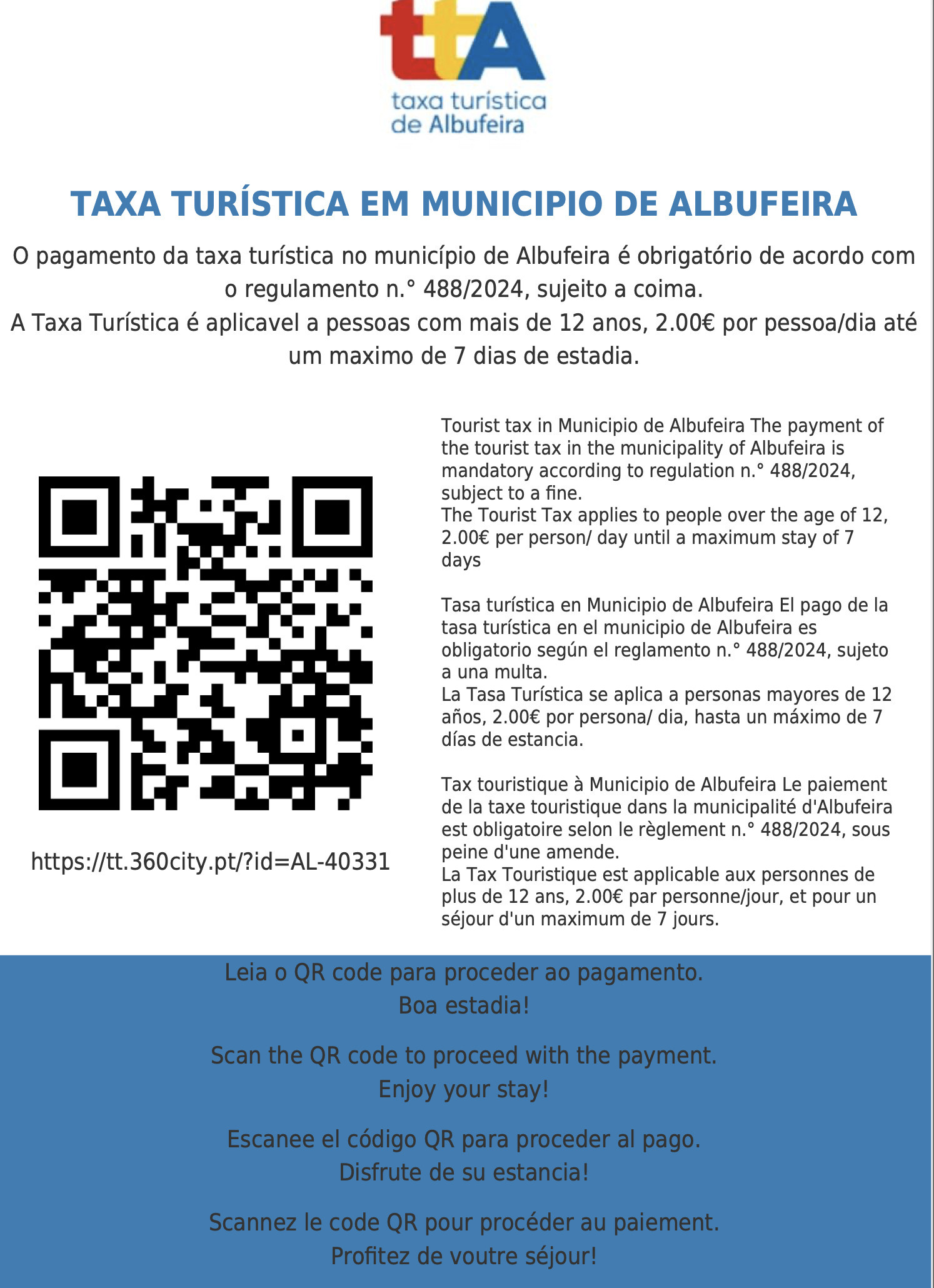 Bed rail: € 2.46 person / night